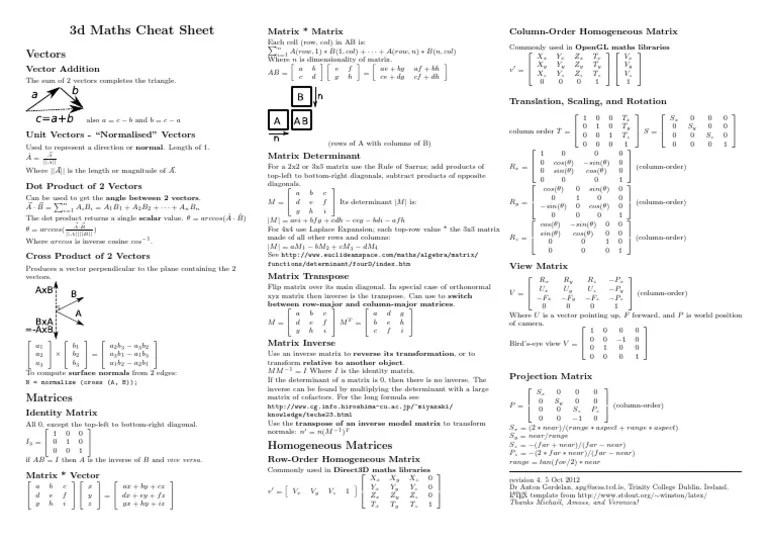 A directed line segment is called vector. Keep it handy while you're revising the. Use our vectors cheat sheet today! The formula sheet & tables for addition of vectors concept are available over here. It is created using std::vector name; This one page pdf covers summarised theory and the most important formulas related to the concept. A cheat sheet on 3d geometry is also available on this website. You can utilize this addition of vectors formula sheet while doing your homework and board exams preparation. To use vectors, it is necessary to #include the vector library. Calculus vectors cheat sheet vectors cheat sheet. 24.05.2016 · vectors cheat sheet is easy to do if you know what factors to include and what information to write. And it can only store values of the same type. If you are having a hard time in understanding the vectors calculus because it is complex, cheat sheet will help you.
